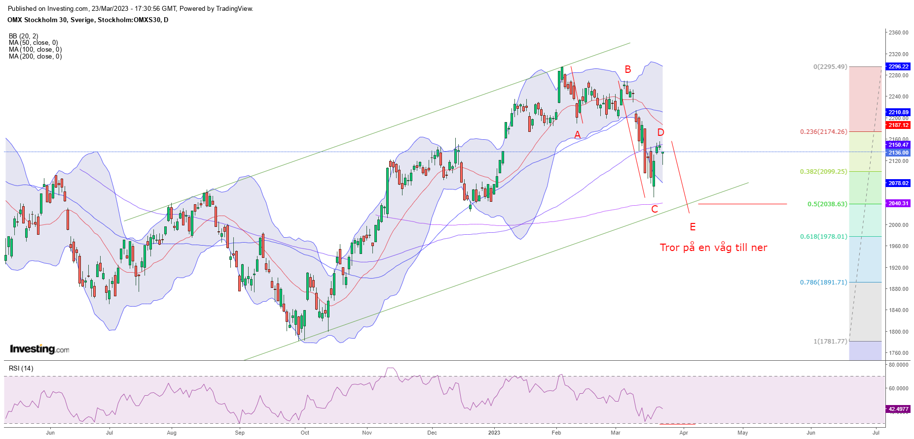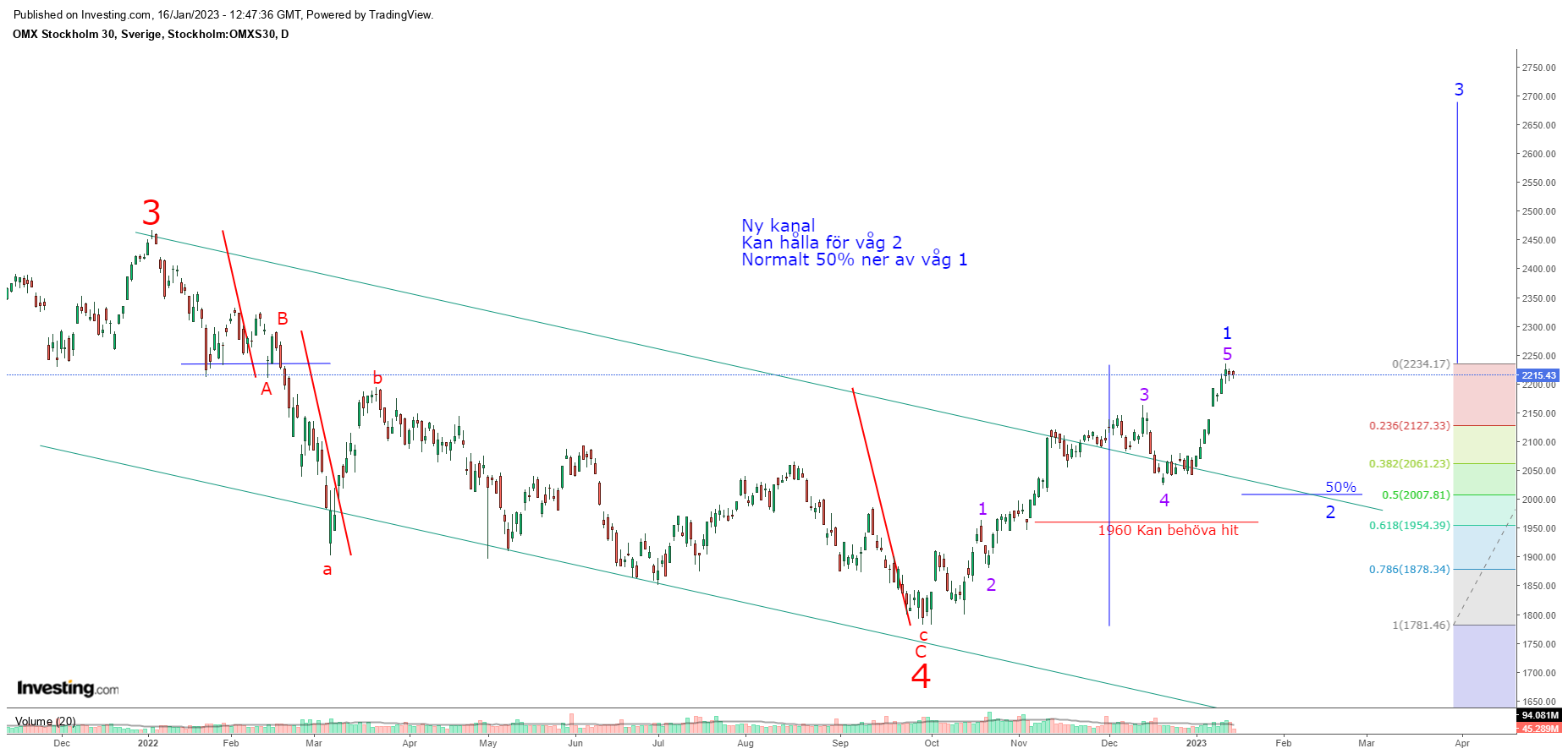 OMX30 topp runt 2010 - 2160 (38% av våg 3 ner)