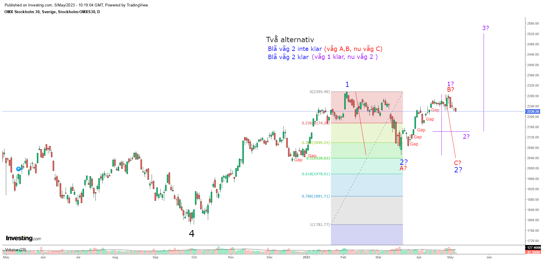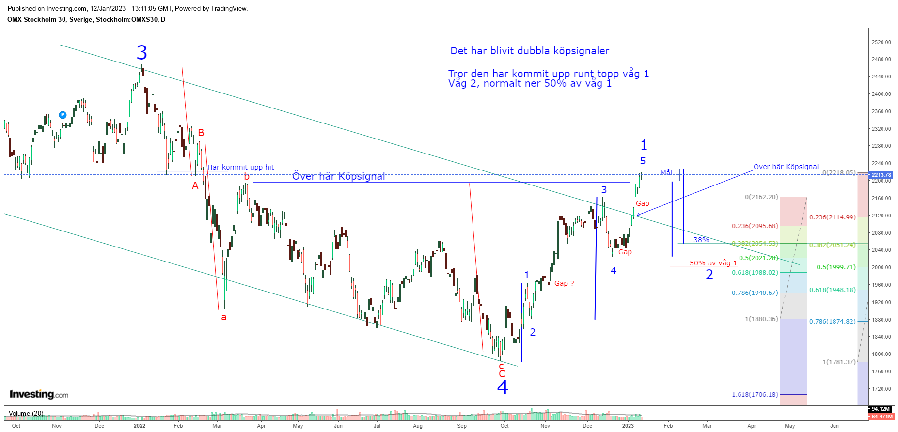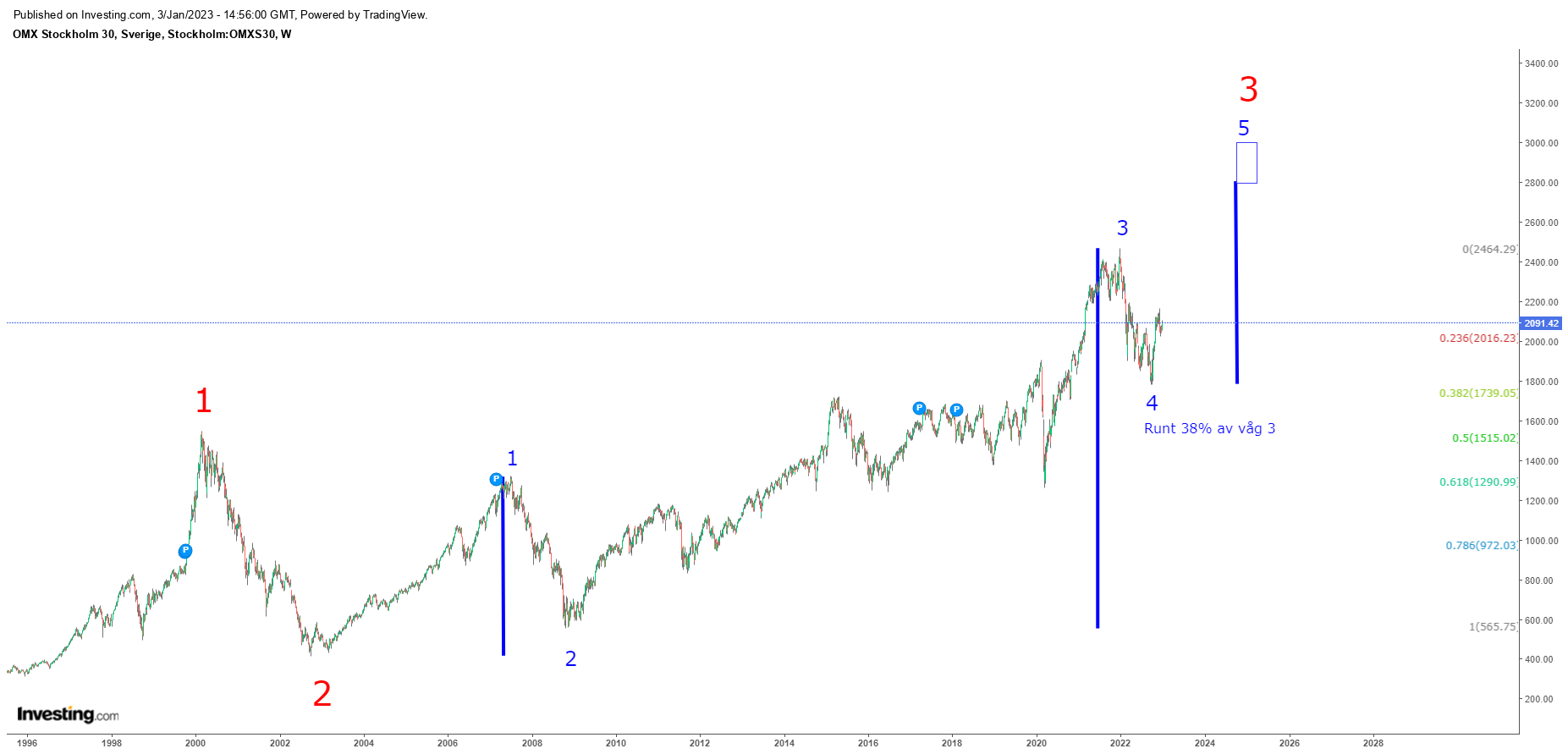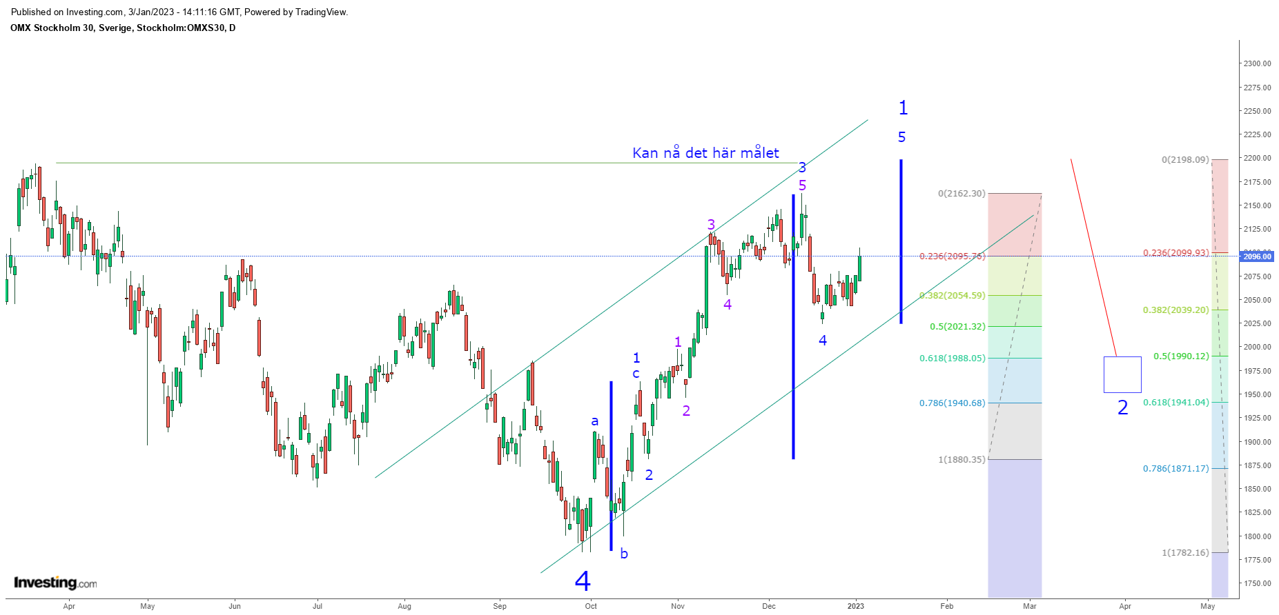 OMX30 topp runt 2010 - 2160 (38% av våg 3 ner)