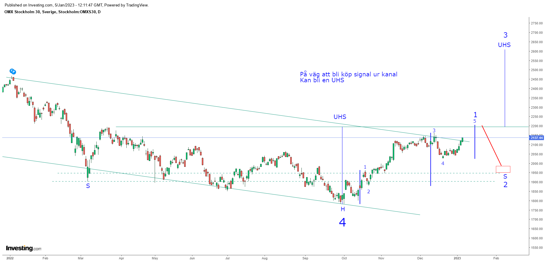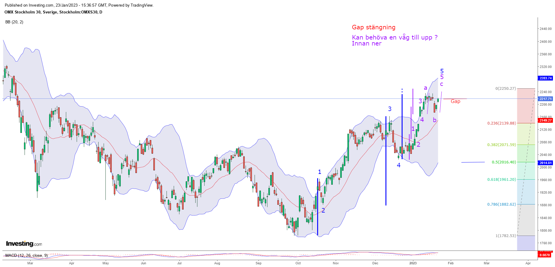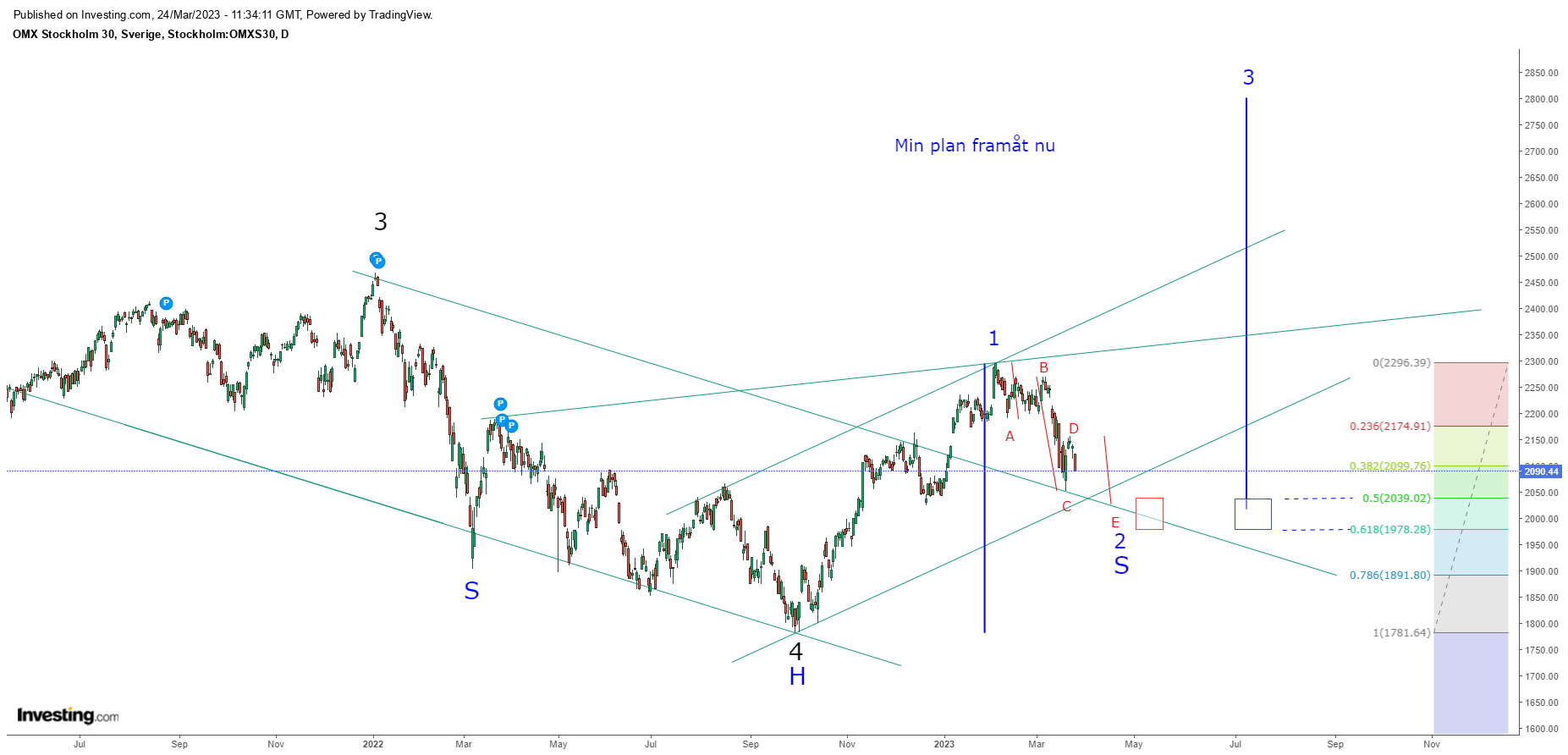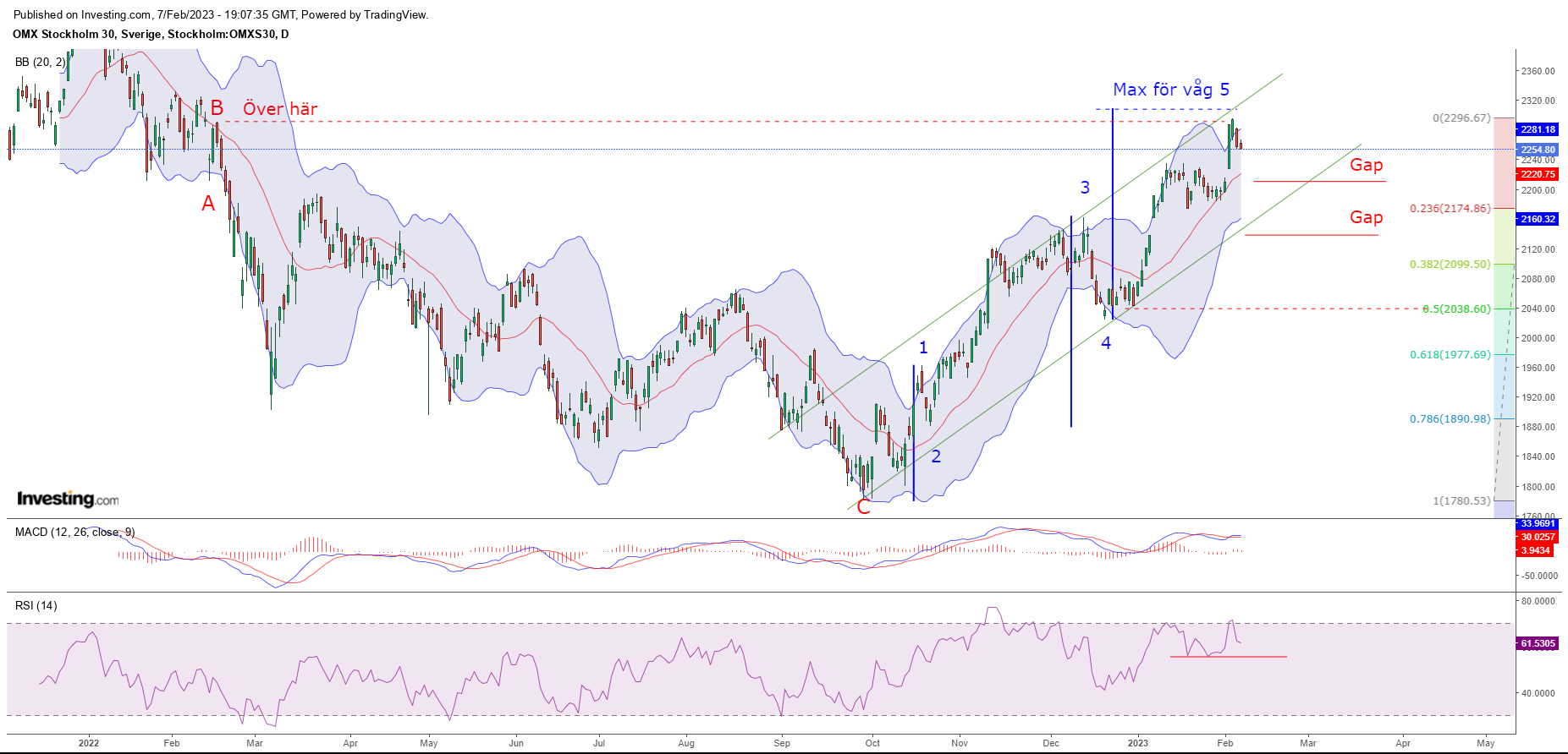 OMX30 topp runt 2010 - 2160 (38% av våg 3 ner)